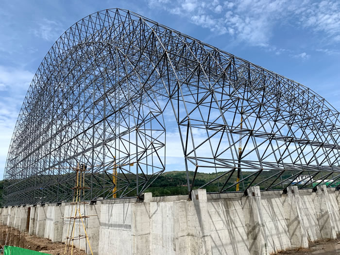 (2)网架加工前应对现场尺寸进行复测,确认无误后方可进行加工、安装;网架制作、运输、安装应遵守《空间网格结构技术规程》JGJ7-2010、《钢网架遵化螺栓球节点》JG/T 10-2009、《钢网架遵化螺栓球节点用高强度螺栓》 GB/T 16939-2016、《遵化钢结构遵化工程遵化施工规范》 GB50755-2012、《遵化钢结构遵化工程遵化施工质量验收标准》 GB50205-2020。